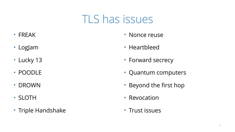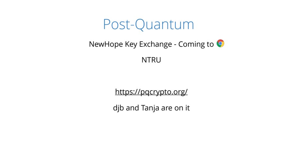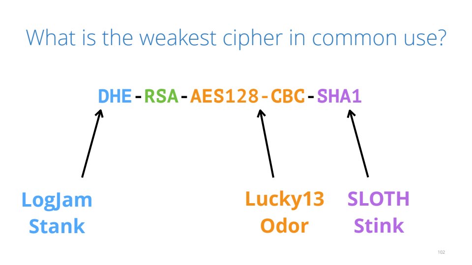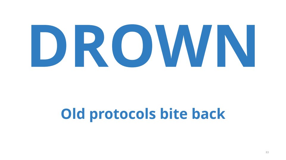 It’s been a tough couple years for crypto protocols. Almost every month a new vulnerability in TLS come out that flattens everything. In this talk I’ll explain the latest set of cryptographic vulnerabilities in plain english. By the end of the talk you’ll hopefully know the difference between FREAK, LogJam, NOOB, DROWN, POODLE and SLOTH (only one of these is made up). We’ll be breaking good crypto and bad with side-channels, signing oracles and downgrades. I’ll also explain how the latest changes to TLS are supposed to fix things and how the entire house of cards may topple once quantum computers arrive.